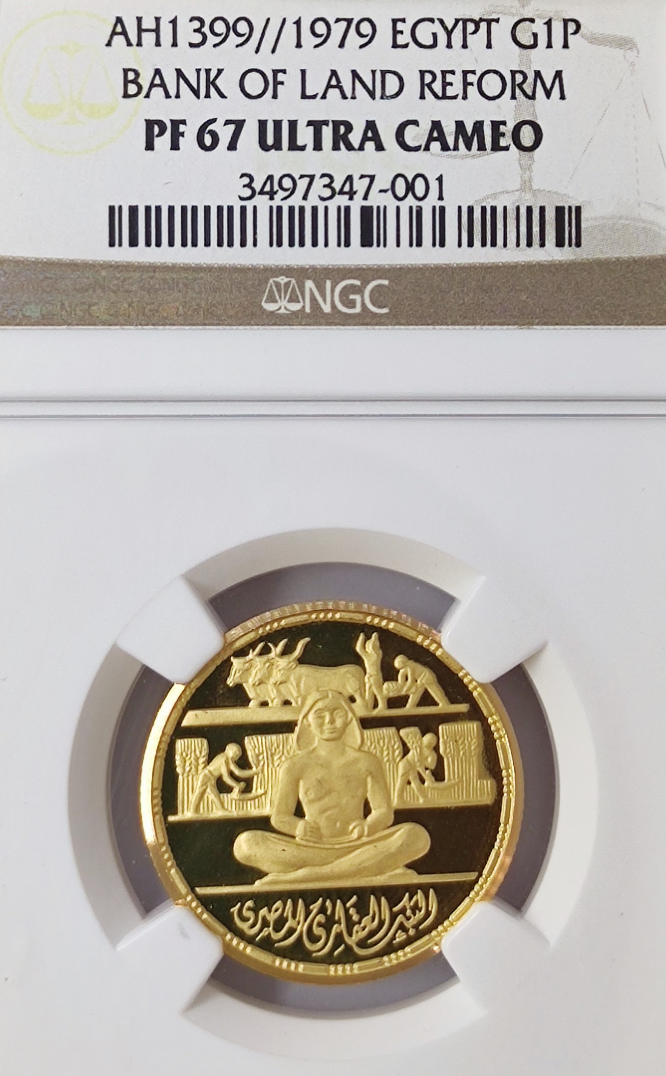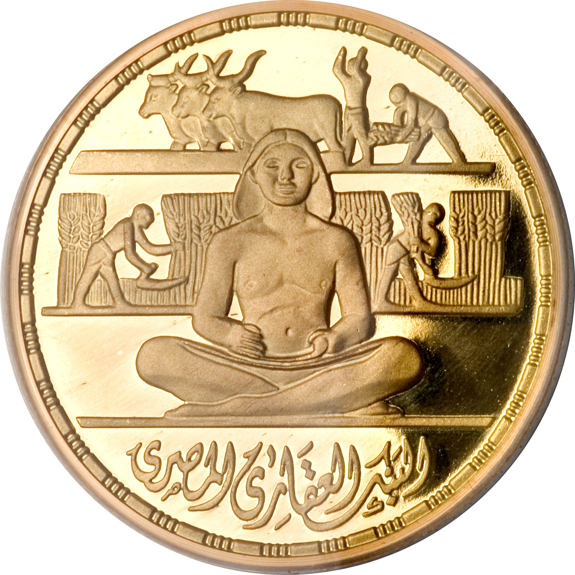 Sell 1,067.88 €Commemorating the 100th Anniversary of the Bank of Land Reform, Egypt presents a special issue gold coin with a denomination of 1 pound.