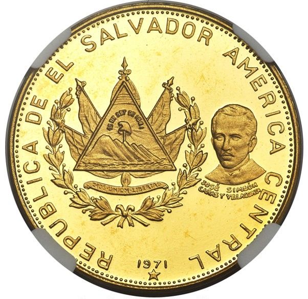Sell 1,842.22 €El Salvador’s 1971 gold coin, worth 100 Colones, celebrates the 150th anniversary of the country’s independence.