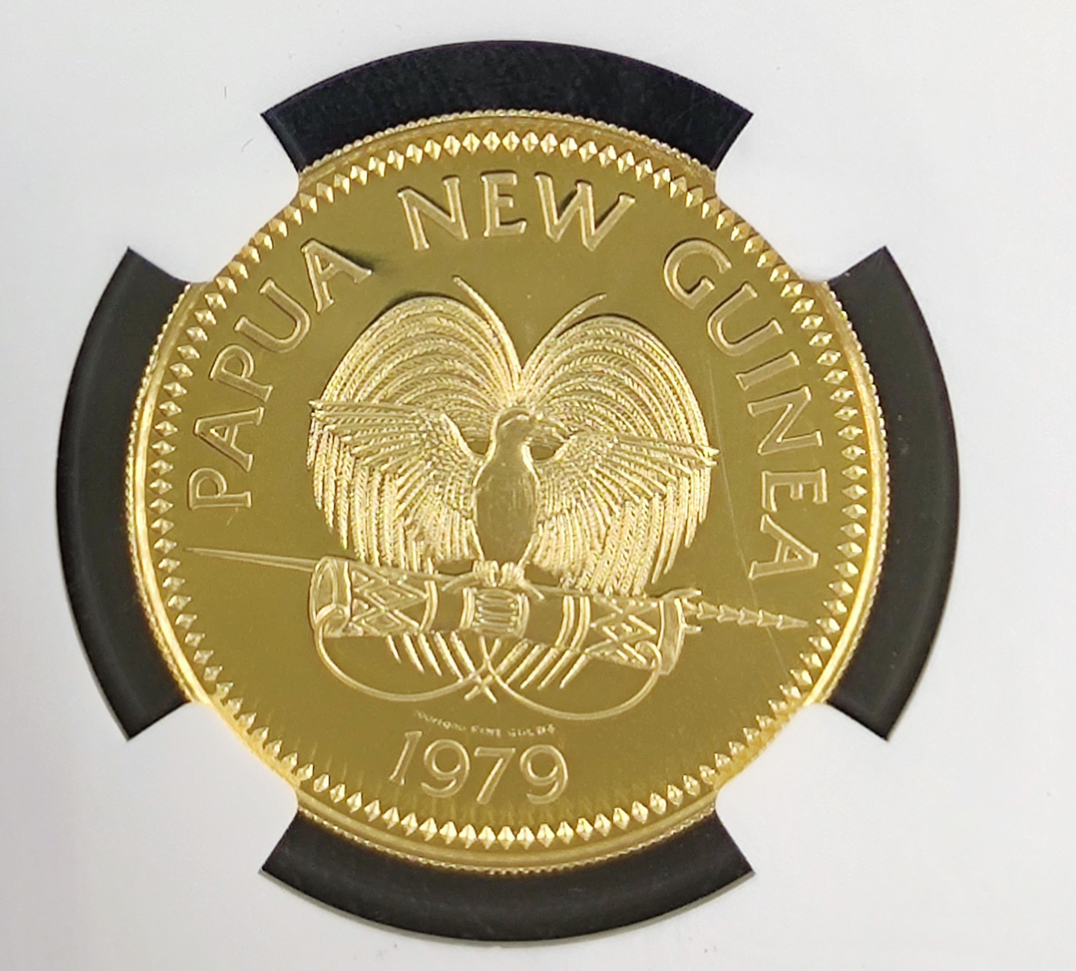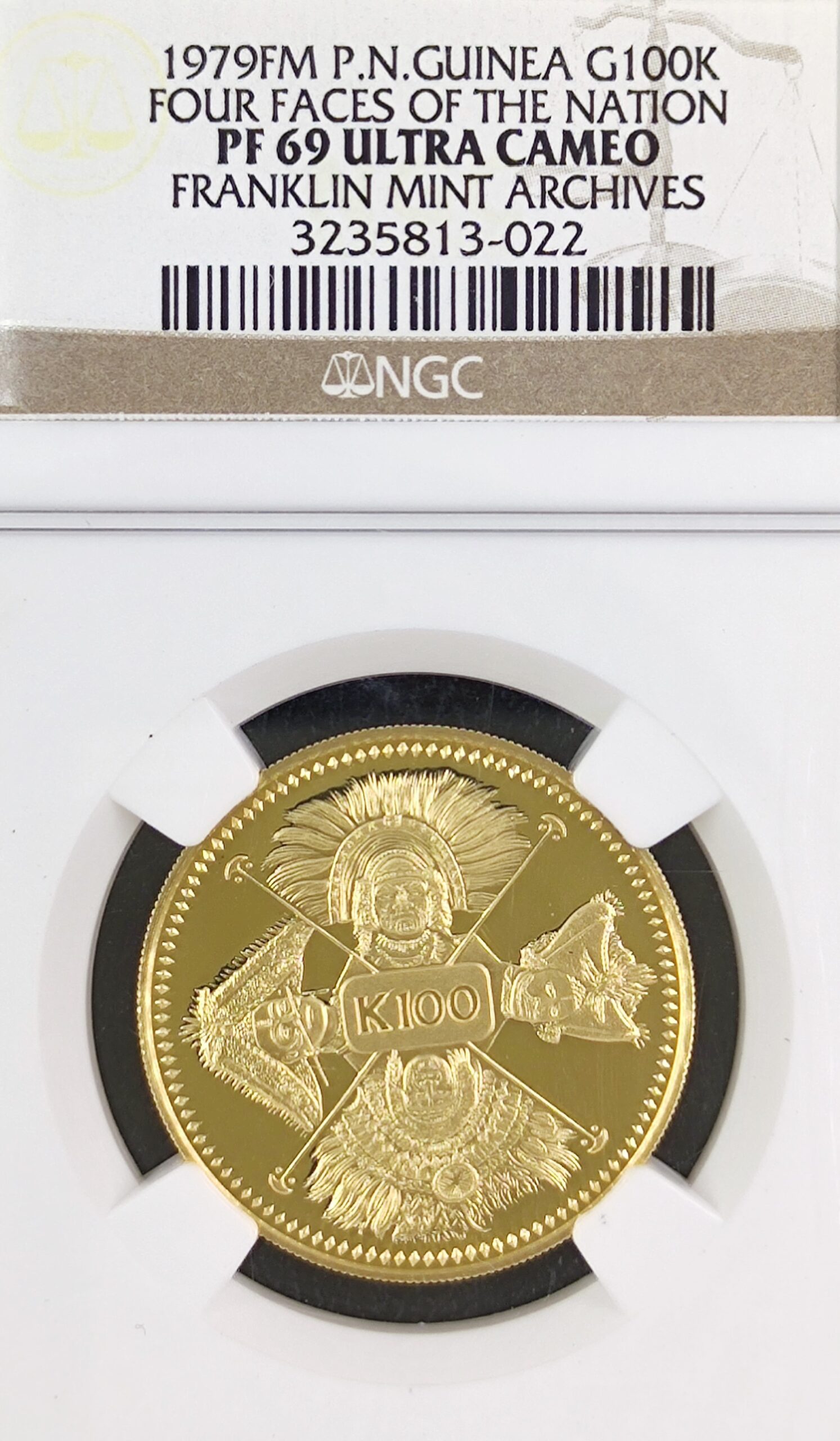 Sell 1,515.67 €The 1979 “Four Faces of The Nation” gold coin represents the cultural diversity of Papua New Guinea. Featuring four distinct faces, each portraying a different ethnic group’s traditional characteristics, this coin celebrates the unity found within diversity.
