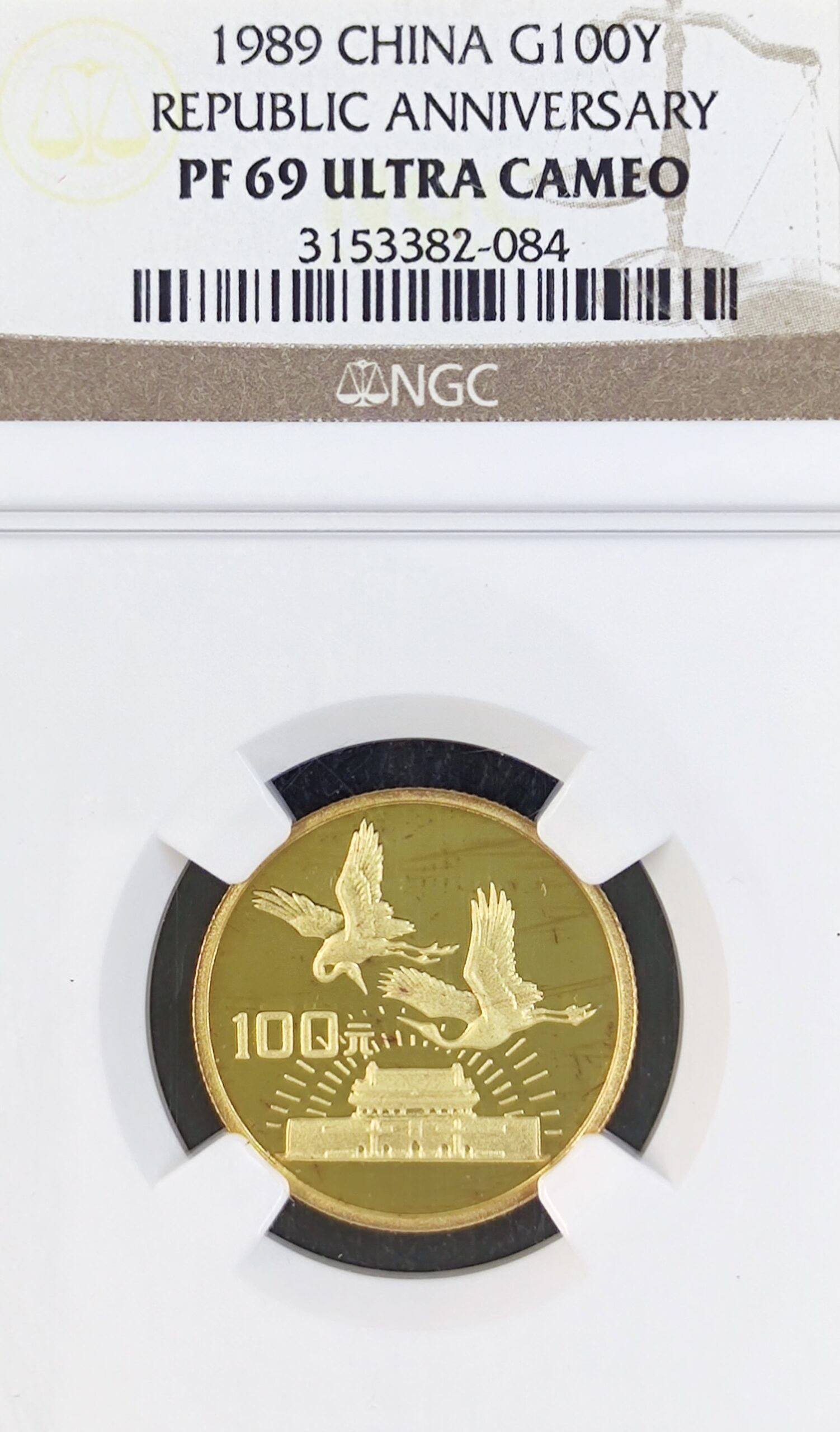 Sell 1,154.76 €The 1989 China Republic Anniversary Gold Coin is a commemorative piece marking the 40th anniversary of the People’s Republic of China.