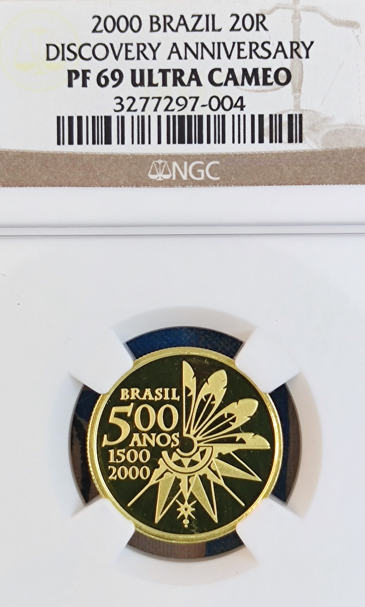 Sell 1,037.37 €The 2000 gold coin “20 Reals Brazil Discovery Anniversary” is dedicated to commemorating the 500th anniversary of the discovery of Brazil by Portuguese explorer Pedro Álvares Cabral in the year 1500.