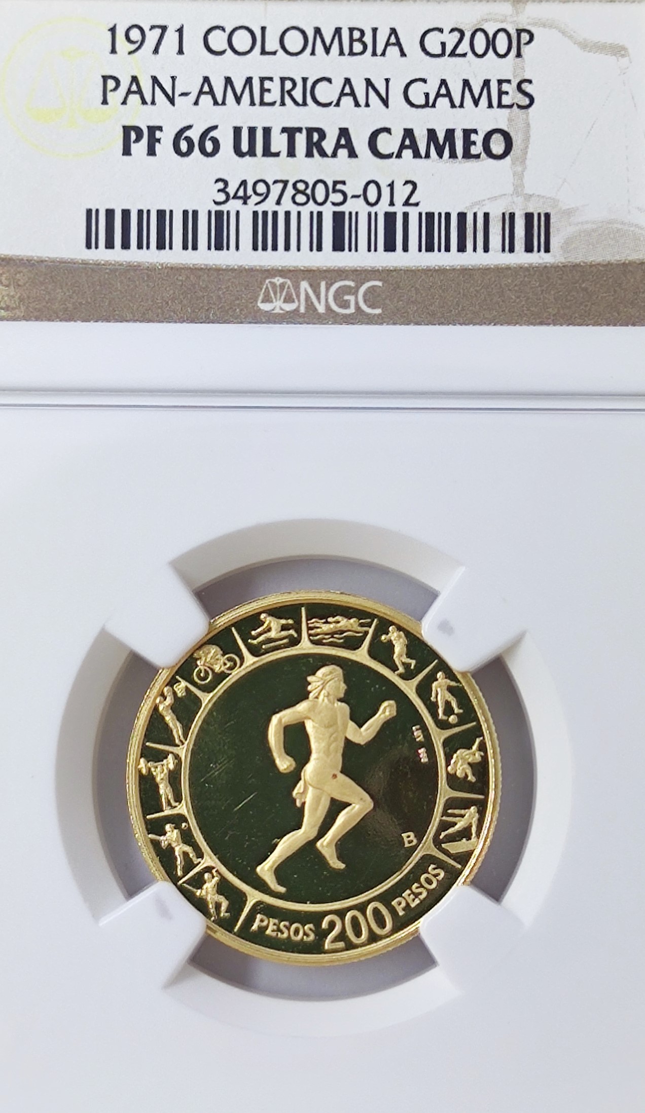 Sell 1,442.09 €This gold coin was struck to commemorate Colombia’s hosting and participation in the Pan American Games in 1971.