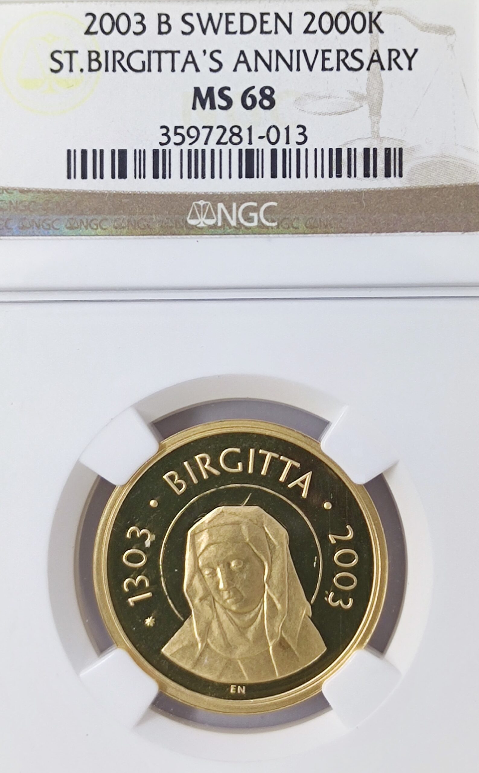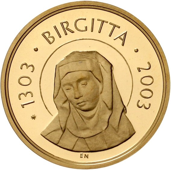 Sell 1,873.44 €The 2000 Kronor Sweden Saint Brigitte gold coin is dedicated to the 700th Anniversary of the Birth of Saint Birgitta.
