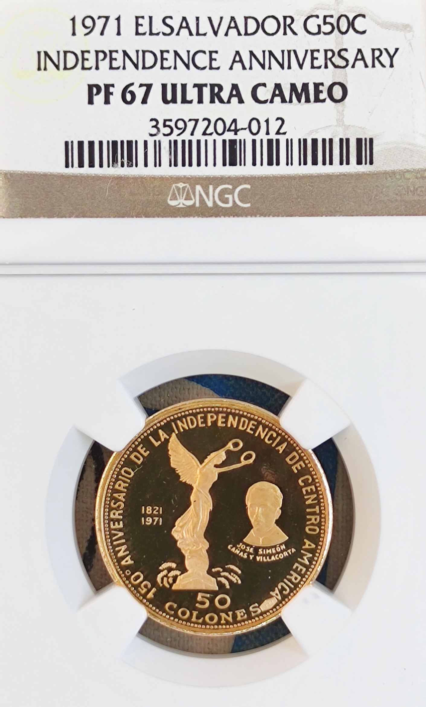 Sell 925.63 €The 50 Colones El Salvador Independence Anniversary gold coin is dedicated to the 150th anniversary of El Salvador’s independence from Spain.