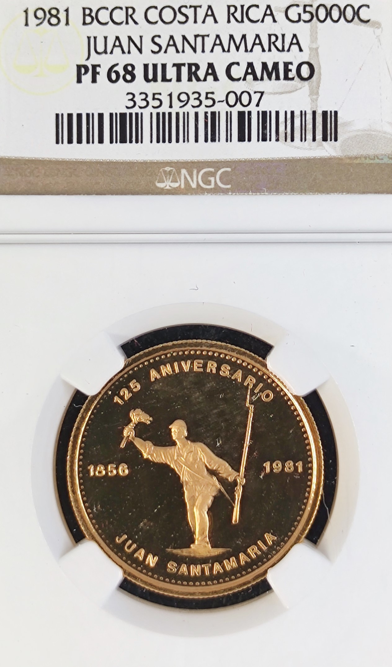 Sell 2,078.81 €The coin commemorates the 125th anniversary of the death of Costa Rica’s national hero JUAN SANTAMARIA (1856-1981).